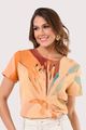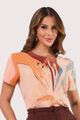 Blusa em crepe leve com estampa exclusiva.Modelagem soltinha, com mangas curtas e gola redonda. Possui caimento fluido e toque delicado, ideal para produções versáteis. Fechamento nas costas por botão, garantindo praticidade e acabamento limpo.