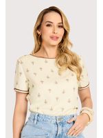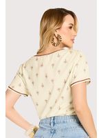 Blusa em crepe leve com estampa exclusiva. Possui modelagem reta que valoriza o caimento e acabamento com vivo contrastante na gola e nas barras das mangas, trazendo um toque delicado e sofisticado ao visual.