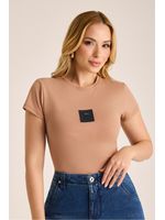 O toque macio e suave da malha transmite conforto imediato, envolvendo a pele com leveza. A modelagem básica ganha destaque com a cor neutra terrosa e a aplicação de etiqueta frontal em contraste, que adiciona personalidade ao design clean. Versátil, pode ser usada tanto em composições casuais com jeans quanto em sobreposições modernas com alfaiataria. Ideal para o dia a dia, adapta-se facilmente do look descontraído ao urbano sofisticado.