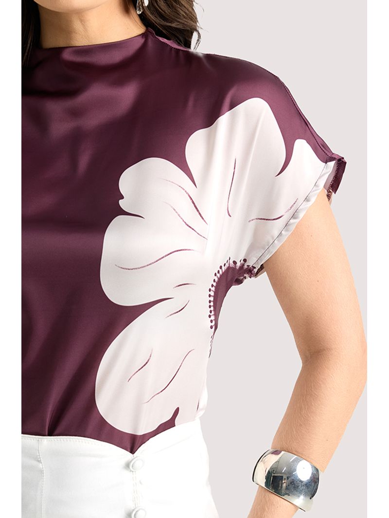 Com design simples e sofisticado, esta blusa une o brilho acetinado do tecido tipo cetim a uma modelagem de linhas elegantes e atemporais. O toque macio e a fluidez do tecido garantem um caimento leve, valorizando a silhueta com conforto e movimento natural. O destaque fica por conta da estampa floral em contraste, que adiciona um toque artístico sem perder a sobriedade. Nas costas, a fenda com fechamento em botão cogumelo traz delicadeza e praticidade, completando o visual com um charme sutil.