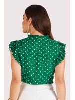 Leve e fresca ao toque, esta blusa em tecido translúcido revela a delicadeza do poá em contraste com o movimento sutil dos babados nas cavas. O decote com amarração e gola franzida adiciona um toque romântico e elegante. Perfeita para composições com jeans, saias fluidas ou peças de alfaiataria em produções leves e femininas.