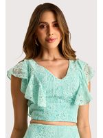 Delicado e versátil, o Cropped de Renda une leveza e feminilidade. Com babados fluídos, decote em V e detalhe nas costas com amarração e zíper, traz um caimento suave que valoriza o corpo. Ideal para compor looks românticos, casuais ou sofisticados uma peça que transita do dia à noite com charme e elegância.