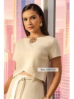BLUSA EM LINHO COM TRANSPASSE NA FRONTAL E PREGAS NO OMBRO.