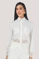 Confeccionada em tecido leve e macio, a peça oferece toque suave e caimento fluido, transmitindo frescor e delicadeza ao vestir. O design traz gola clássica, fechamento frontal por botões forrados e bolsos aplicados no busto, que adicionam charme utilitário. Os detalhes em renda na barra e nos punhos criam um contraste delicado, valorizando a feminilidade da peça. Ideal para compor looks elegantes do dia a dia, combina com jeans, alfaiataria ou saias para ocasiões casuais ou mais arrumadas.