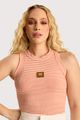 Blusa regata cavada em malha canelada, com estrutura firme e caimento que se ajusta ao corpo sem marcar. A elasticidade do tecido garante conforto e mobilidade, enquanto a etiqueta aplicada no centro frontal adiciona um toque de estilo. Versátil e moderna, funciona tanto como base de sobreposição quanto como peça principal em looks casuais e atuais.