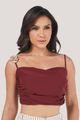 Versátil e atemporal, esse top drapeado se adapta a diferentes estilos e ocasiões. O drapeado frontal cria um efeito visual elegante, valorizando o busto e garantindo um caimento suave que acompanha o corpo sem marcar. Confeccionado em tecido de toque macio, oferece conforto ao vestir e mantém a forma ao longo do uso. A superfície lisa com leve brilho contribui para um visual sofisticado, enquanto as alças finas reguláveis e o fechamento posterior proporcionam ajuste preciso e segurança. O detalhe de flor aplicada na alça adiciona um toque delicado e feminino, elevando o design da peça e trazendo um charme especial ao visual.
