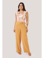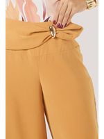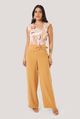 Esta calça traz uma proposta moderna e versátil, perfeita para transitar entre estilos com naturalidade. Seu design aposta em uma cintura com efeito torcido e fivela decorativa, detalhe que adiciona personalidade tanto a produções casuais quanto a combinações mais elegantes. A modelagem reta e alongada favorece diferentes silhuetas e permite compor looks que vão do minimalista ao sofisticado. O tecido plano de toque macio, estrutura leve e queda fluida é o responsável pelo equilíbrio da peça. Ele garante corpo suficiente para manter a forma da cintura trabalhada, ao mesmo tempo em que oferece movimento no comprimento das pernas, criando um caimento limpo, elegante e confortável. O zíper posterior, discreto e funcional, complementa o visual ao proporcionar um fechamento seguro sem interferir na estética frontal da peça.