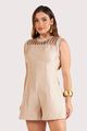 Macaquinho curto em tecido de alfaiataria.Com recortes que valorizam a silhueta, decote em tule com detalhe de corda coberta com próprio tecidos e fechamento nas costas por zíper. Peça totalmente forrada, garantindo conforto e ótimo caimento.
