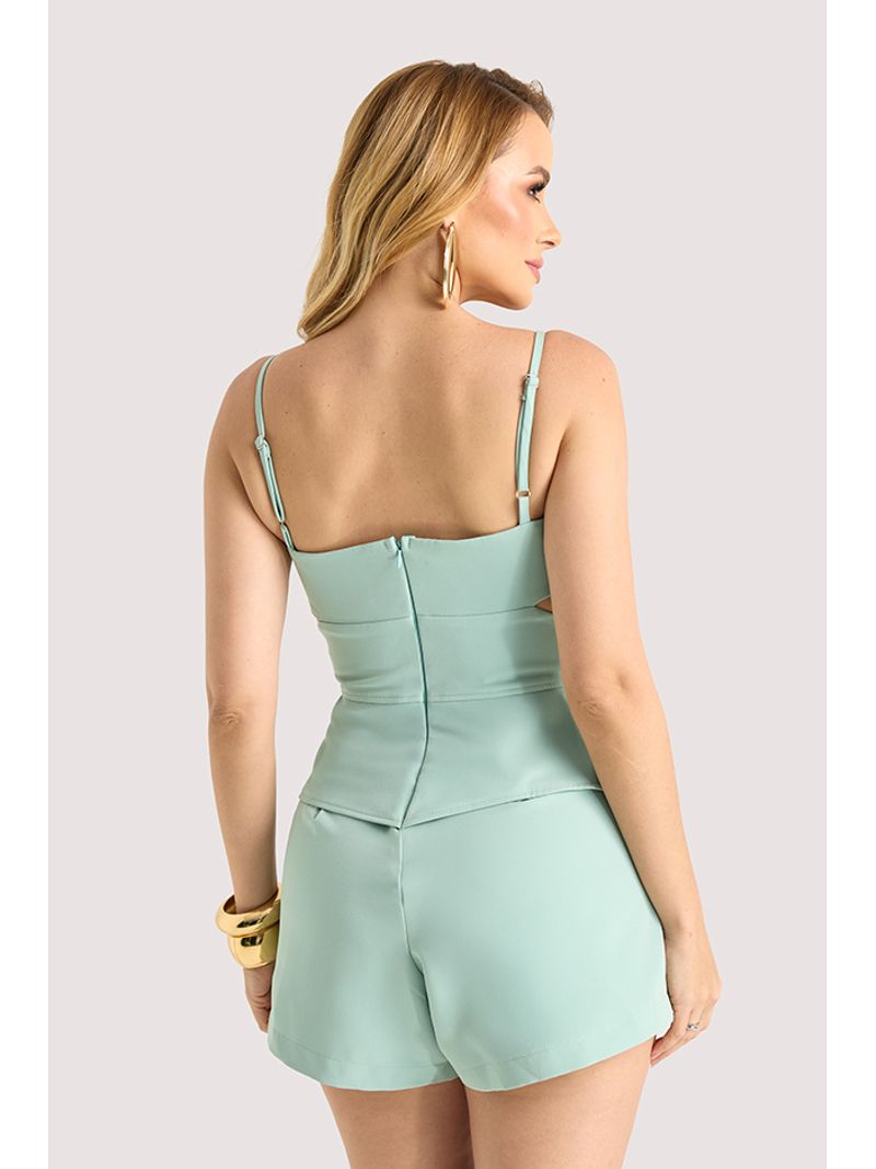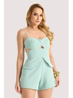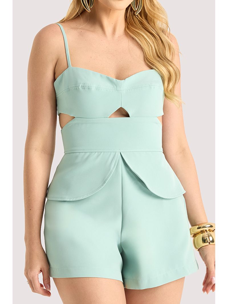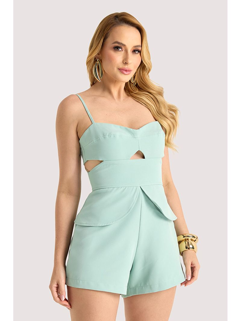 Com toque macio e estrutura elegante, o macaquinho transmite sofisticação em sua textura encorpada e confortável. O design valoriza a silhueta com recortes estratégicos, detalhe peplum na cintura e delicado decote reto com alças finas. Forrado e com zíper nas costas, garante acabamento impecável. Ideal para ocasiões noturnas ou eventos casuais sofisticados, combina bem com saltos delicados ou sandálias modernas.