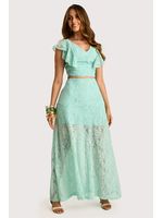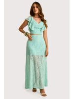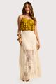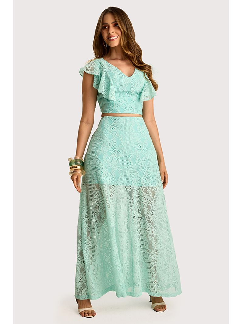 A saia longa godê de renda com recortes e zíper lateral traduz feminilidade e elegância com um toque de praticidade. Confeccionada em renda floral trabalhada, o tecido traz textura rica e transparência delicada, resultando em um visual sofisticado e leve. O recorte godê garante movimento fluido e caimento impecável, enquanto os recortes estratégicos realçam a silhueta com equilíbrio entre estrutura e suavidade. O zíper lateral embutido oferece fechamento discreto, preservando a pureza das linhas da peça e proporcionando um ajuste perfeito ao corpo.
