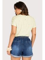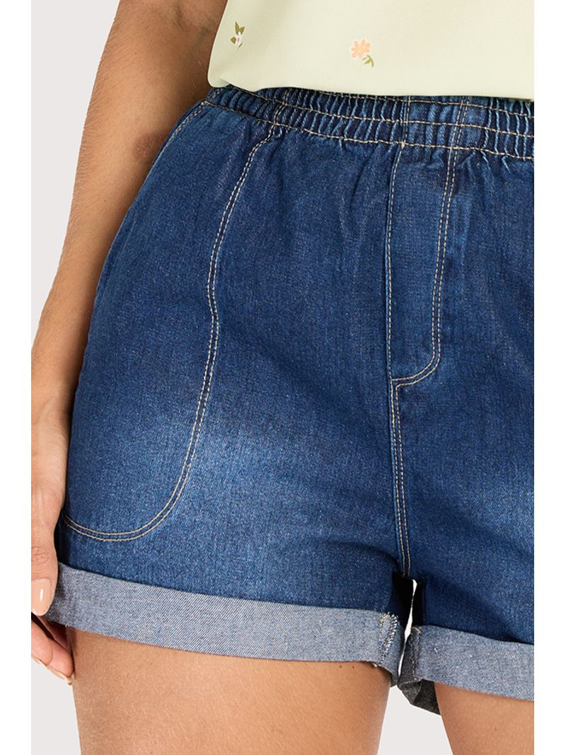 short jeans de peso médio de comprimento curto, com cós de elástico e bolsos funcionais frente e costa. Nesse modelo a lavanderia vem média e marcada. Versátil e atemporal esse modelo é a cara do verão e pode ser usado em diversas ocasiões.