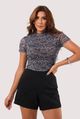 SHORT COM NERVURAS CRUZADAS FORMANDO LOZANGOS PENCES E ZÍPER COSTAS.