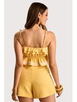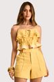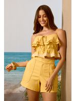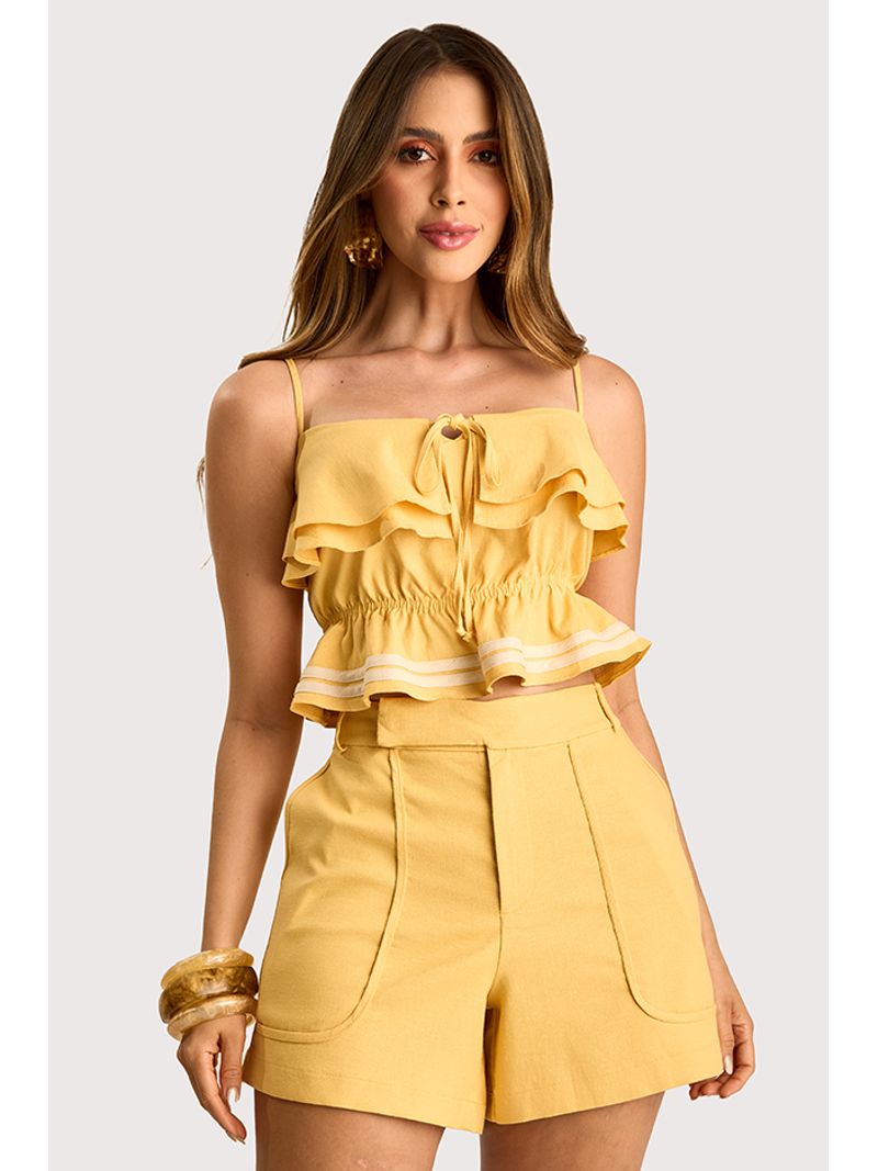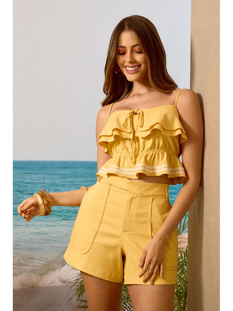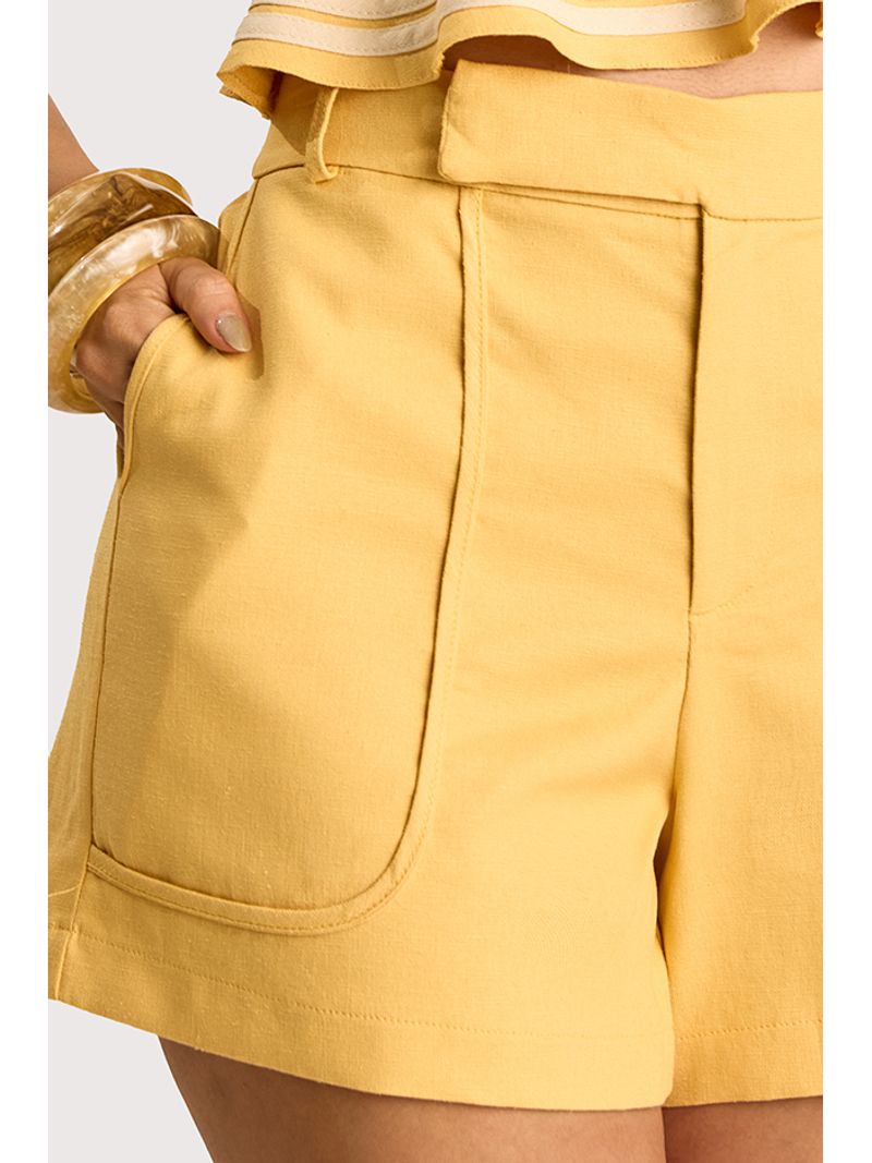O short em tecido de linho traduz frescor e elegância, alinhado às tendências que destacam o conforto sofisticado do verão. Apresenta modelagem reta com cós anatômico e fechamento interno, recorte central e bolsos frontais que reforçam o visual minimalista e moderno. O caimento estruturado valoriza a silhueta com leveza e praticidade.