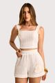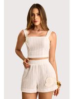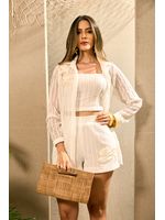 O short boxer em renda linear entrega informação de moda desde o primeiro olhar, com textura que remete ao artesanal e adiciona personalidade ao visual. O forro mantém o uso confortável em cor clara, enquanto o aplique marinho bordado cria um ponto focal elegante e alinhado ao clima da estação. Uma peça com presença, ideal para quem busca algo leve, atual e com diferencial estético para compor looks de verão, viagens e momentos casuais com estilo