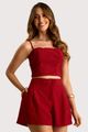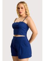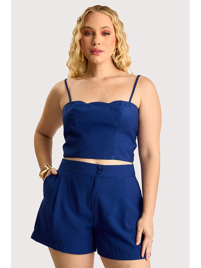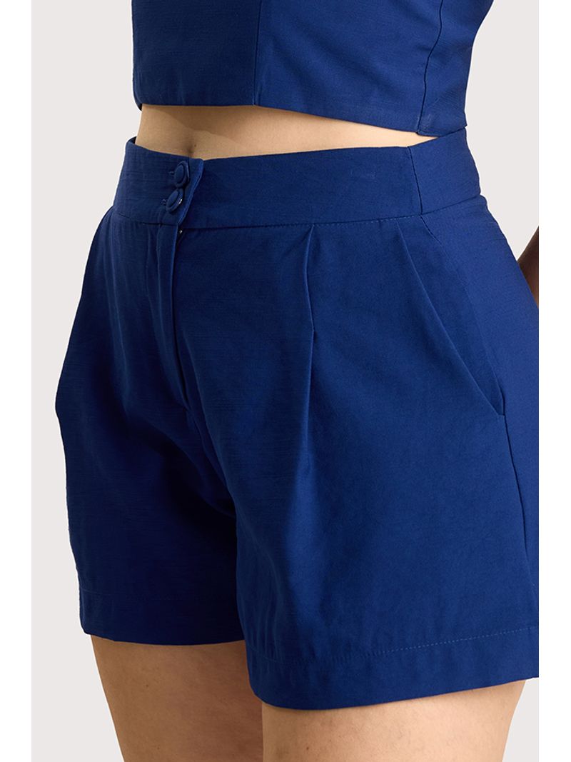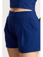 Short curto em tecido de alfaiataria, com modelagem solta, possui braguilha funcional com fechamento assimétrico, botão duplo coberto,pregas frontais que valorizam o caimento e bolsos laterais funcionais. Peça forrada.