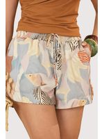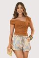 Short curto em crepe leve com estampa exclusiva. . Possui modelagem solta tipo box short, que garante conforto e caimento natural, além de cós com elástico embutido e detalhe de rolitê para amarração que adiciona charme e praticidade. Conta ainda com bolsos laterais funcionais, reforçando sua proposta versátil.