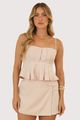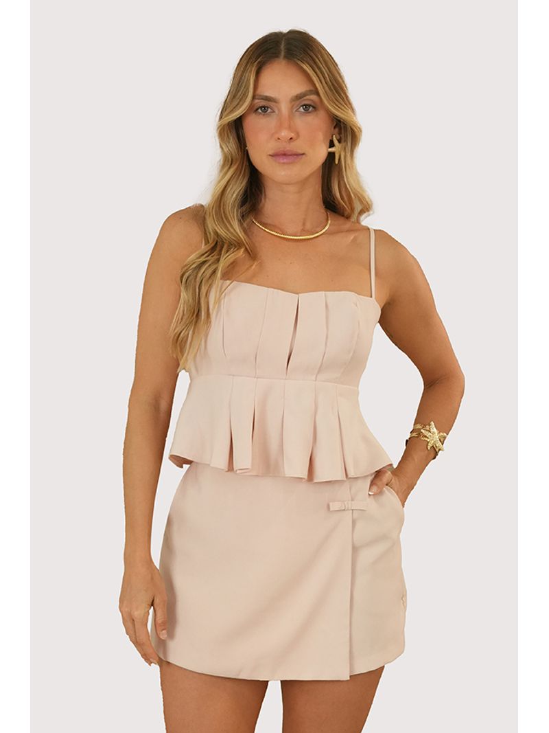 Com toque suave e delicado, o tecido traz uma sensação agradável de leveza ao vestir. O design tipo short-saia combina praticidade e feminilidade, realçado pelos laços aplicados na frente e o fechamento posterior com zíper. Ideal para compor looks românticos com blusas fluidas ou camisas estruturadas, em ocasiões casuais ou encontros ao ar livre.