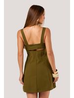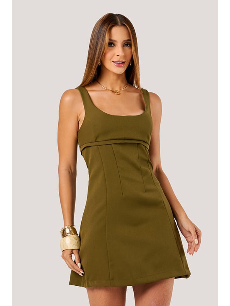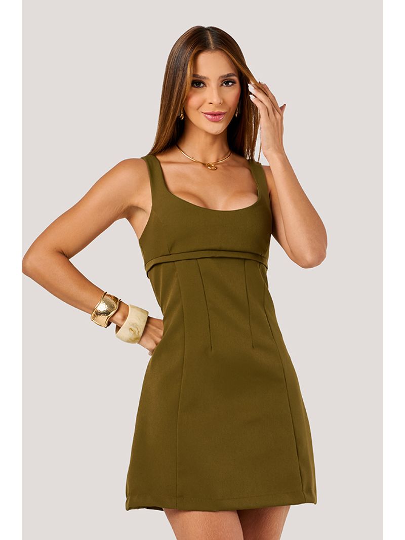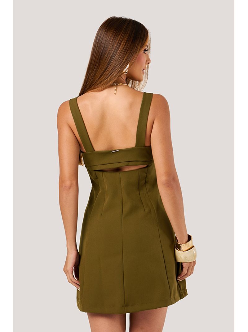 VESTIDO CURTO EM TECIDO PLANO TWEED COM DECOTE EM U ALÇAS LARGAS VAZADOS LATERAIS ABAIXO DO BUSTO LAÇO APLICADO NO CENTRO ZÍPER COSTAS FORRADO