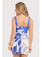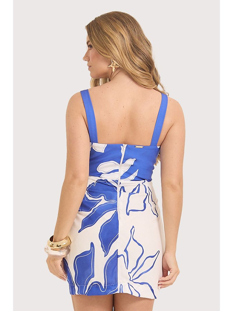 Vestido feminino confeccionado em tecido plano leve, que proporciona caimento fluido com estrutura, garantindo conforto e elegância ao vestir. O modelo possui decote com transpasse estruturado, que valoriza o busto, e alças largas, oferecendo melhor sustentação e segurança. A faixa transpassada na cintura, em tecido com leve textura contrastante, destaca a silhueta de forma equilibrada, enquanto a saia de comprimento curto acompanha o corpo sem marcar, mantendo o movimento natural do tecido. O fechamento posterior em zíper facilita o vestir e assegura ajuste adequado ao corpo.