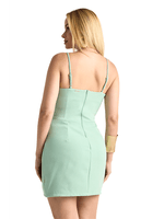 Com toque macio e leve estrutura, o vestido oferece uma sensação de frescor e firmeza ao vestir, com caimento que valoriza as curvas com elegância. As alças finas e reguláveis proporcionam ajuste delicado, enquanto o zíper nas costas e o forro interno garantem conforto e segurança. O busto reto é destacado por vivos em cor contrastante, que criam um efeito gráfico e moderno. Versátil para jantares, festas ou eventos noturnos, vai bem com salto fino e acessórios minimalistas.