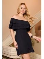 Vestido com movimento suave criado pelo tecido leve em camadas, traduzindo a tendência romântica das mangas e decotes com babados. Sua modelagem ombro a ombro valoriza o colo, enquanto as três camadas frontais adicionam volume elegante e equilibram a silhueta. O caimento é fluido, com acabamento em babado na barra e fechamento em zíper nas costas.